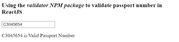 Using the <i> validator NPM package </i> to validate passport number in ReactJS{" "}