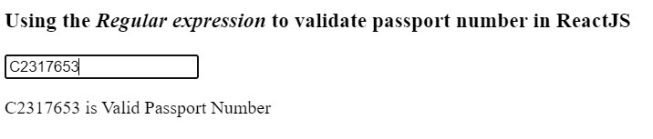 Using the <i> Regular expression </i> to validate passport number in ReactJS {" "}