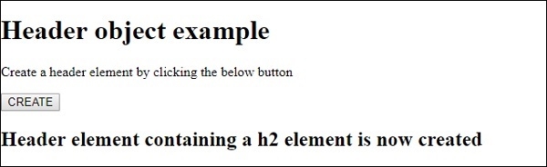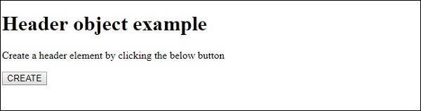 我们创建了一个按钮 CREATE,当用户点击 CREATE 按钮时,将执行 createHeader() 方法 −