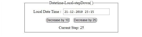 让我们看一个 Input DatetimeLocal stepDown 方法的示例 −