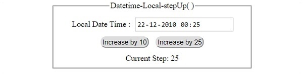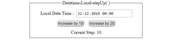 我们来看一个 输入 DatetimeLocal stepUp 方法的示例 −