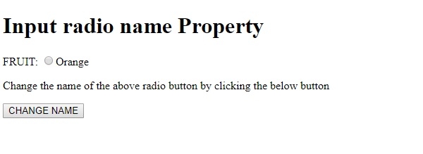 我们首先在 form 中创建一个 input 元素,其 type="radio",name="fruits",id="Orange" −