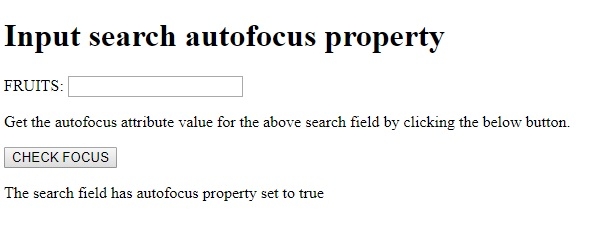 我们来看一个输入搜索 autofocus 属性的示例 −