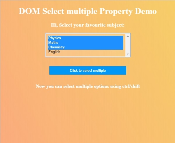 <h1<DOM Select multiple Property Demo</h1>