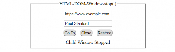 让我们看一个 HTML DOM Window stop() 方法示例 −