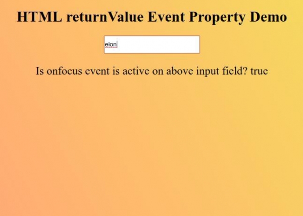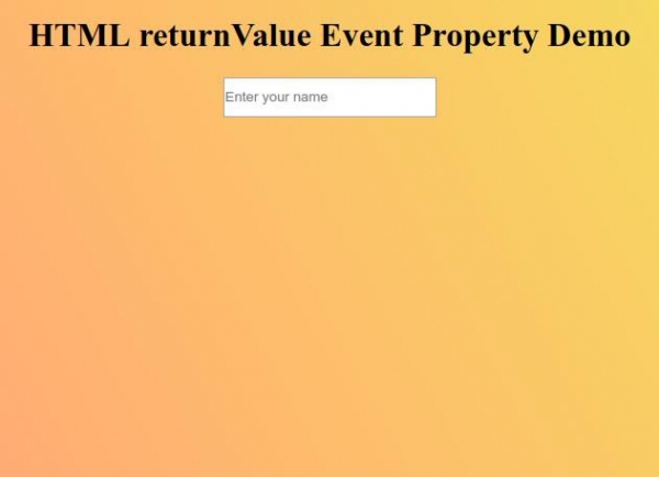 现在尝试在输入框中输入值,使其获得焦点,以显示 returnValue 事件属性的值。