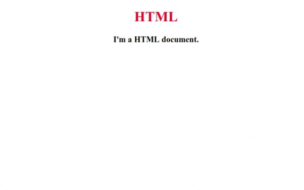 <!DOCTYPE html> <html lang="en"> <head> <meta charset="UTF-8"> <meta name="viewport" content="width=device-width, initial-scale=1.0"> <meta http-equiv="X-UA-Compatible" content="ie=edge"> <title>HTML</title> </head> <body> <h1 style="text-align: center;color:#db133a;">HTML</h1> <h3 style="text-align: center;">I'm a HTML document.</h3> </body> </html>