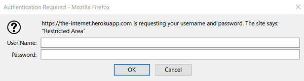 https://username:password@URL https://admin:admin@the-internet.herokuapp.com/basic_auth