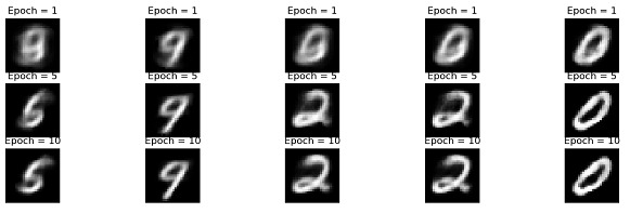该程序绘制给定 epoch 的最后一批中的前五张重建图像。