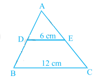 在下图中,如果\( \mathrm{DE} \| \mathrm{BC} \),求 ar (ADE) 和 ar (DECB) 的比值。