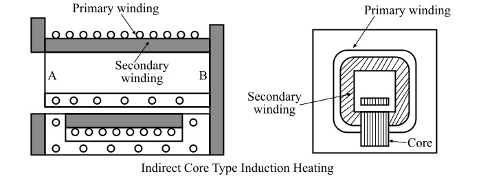 间接铁心式感应炉由一个初级绕组组成,交流电通过该绕组。次级绕组由一个金属容器组成,该容器构成炉体本身的壁。初级绕组通过铁芯与次级绕组磁耦合。