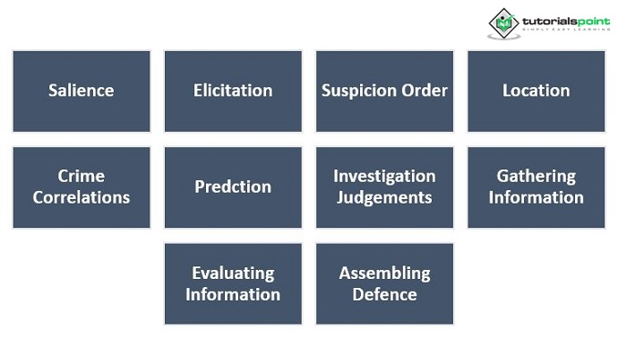 然而,调查过程可能难以遵循。例如,侦探可能没有如此确凿的证据,但他们可能会有一个怀疑,即入室盗窃的技术特征与他们过去逮捕的众多罪犯之一相同。或者,在更复杂的情景(如谋杀案)中,他们可能会从犯罪现场的混乱中推断出,犯罪者是一名受到行为影响的入室盗窃犯。这些结论要么会促使他们寻找更多信息,要么会促使他们从一系列潜在措施中进行选择,例如逮捕和指控一名嫌疑犯。