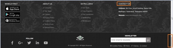 driver.execute_script("window.scrollTo(0, document.body.scrollHeight);")让我们滚动到页尾并获取文本 CONTACT US −