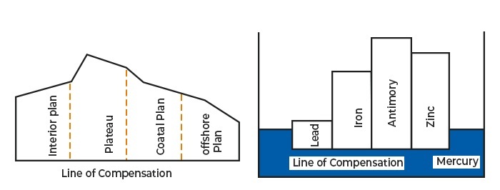 假设是“各柱中物质体积的变化由其密度来补偿,以至于它们在补偿面处施加相等的向下压力,从而相互平衡”。