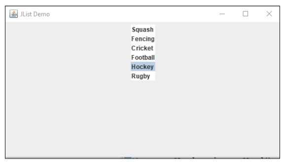 JList list = new JList(sports);以下是一个检查 JList 中是否选中第二个项目的示例