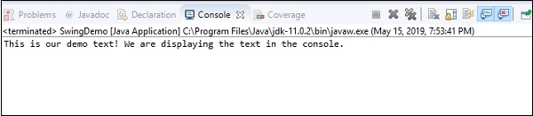 textPane.setText("This is our demo text! We are displaying the text in the console.");