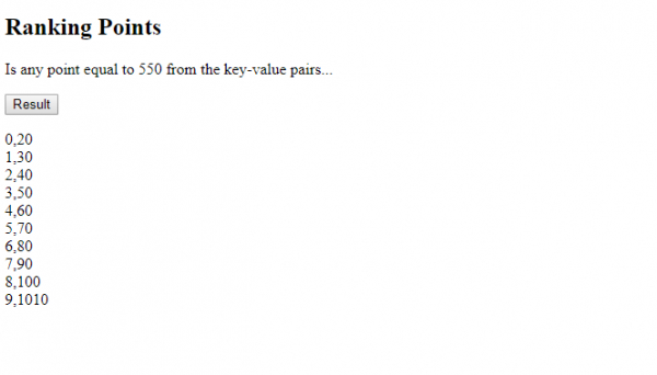 <p>Is any point equal to 550 from the key-value pairs...</p>