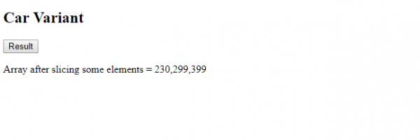 document.getElementById("test").innerHTML = "Array after slicing some elements = "+carid.slice(1,4);