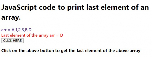 <h3>Click on the above button to get the last element of the above array</h3>
