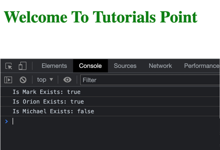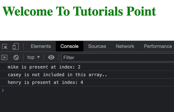 创建数组后,让我们看看如何从数组中搜索特定值。有多种方法可以搜索元素是否存在于数组中。下面我们将讨论这些方法。