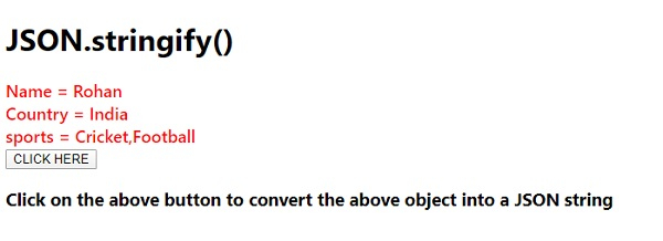 let obj = {name: "Rohan",sports: ["Cricket", "Football"],Country: "India",};