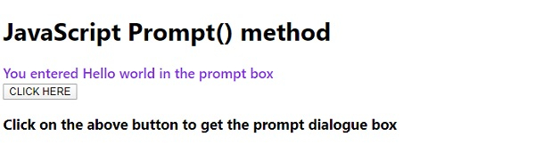 <h3>Click on the above button to get the prompt dialogue box</h3>