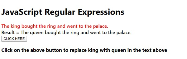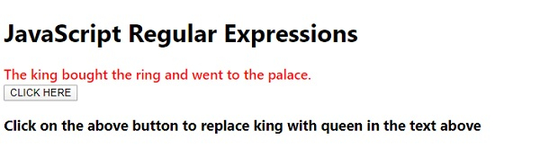 let newText = sampleEle.innerHTML.replace(/king/gi,'queen');