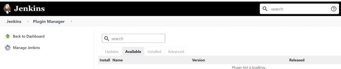 我们将导航到插件管理器页面,在这里我们将获得可用Jenkins插件的列表。