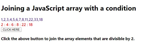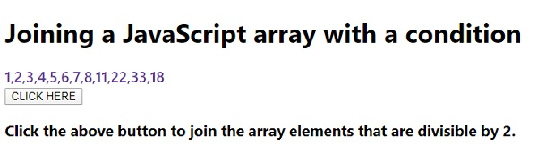 <h3>Click the above button to join the array elements that are divisible by 2.</h3>