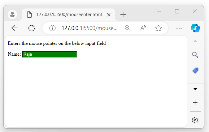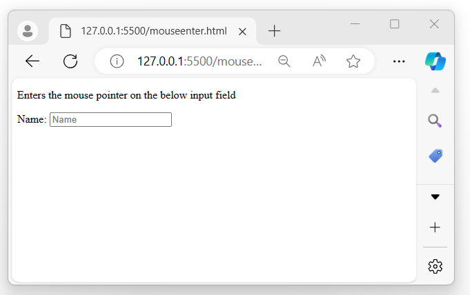 执行以上程序后,将显示一个输入字段,当鼠标指针进入输入元素时: