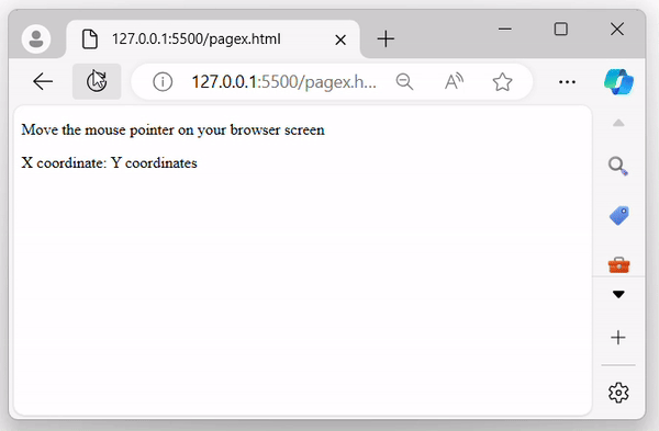 当鼠标指针在浏览器屏幕上移动时,X 和 Y 坐标将显示在屏幕上: