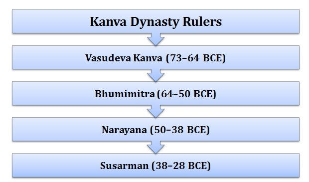 孔雀王朝人被认为是孔雀圣人(Kanva Rishi)的后裔。总共有四位国王统治着孔雀王朝,分别是迦摩伐苏、布米米特拉、纳拉延和苏萨曼。所有孔雀王朝人都在位于印度东部的摩揭陀的巴特那统治。迦摩伐苏统治了近9年,并将王位传给了他的儿子布米米特拉。