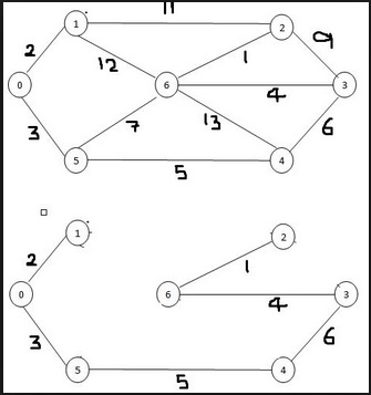G(V,E)是有连接的图,且给定了每条边的权重或代价。克鲁斯卡尔算法将使用此图和代价找出最小生成树。