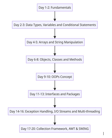 如果您想深入学习Java编程,您将需要一个清晰的路线图。很难,但如果计划得当,是可以做到的。要涵盖整个Java课程,请将工作分开:每天学习两个主题,您只需20天就能掌握这门语言。您只需要付出一些努力和奉献。所以,还在等什么?开始学习Java吧,让您的热情指引您完成这段旅程!