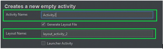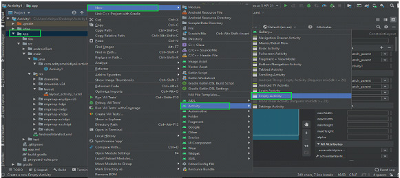 使用Android Studio创建另一个活动相对简单。首先右键单击应用程序,将鼠标悬停在“新建”上并选择“活动”,然后选择“空活动”。接下来,将活动重命名为“Activity2”,并将布局名称重命名为“layout_activity_2”。如果出现任何疑问,将提供参考图像。完成这些基本步骤后,新活动创建完成。