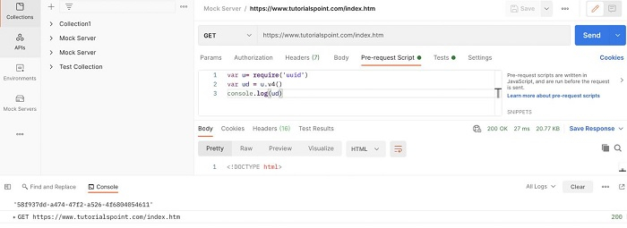 借助下面列出的步骤,我们可以在 Postman 中手动生成 GUID −