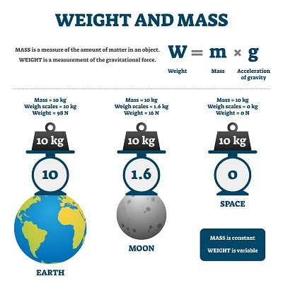 | 物体的质量不会改变。它始终是恒定的 | 物体的重量会随作用在其上的重力而变化 |