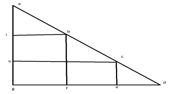 给定一个直角等腰三角形。等腰三角形是指两条边长度相等的三角形。直角三角形是指高(图中的ag)和底(图中的dg)相互垂直的三角形。目标是找到可以放入这个边长为2个平方单位的直角等腰三角形中的最大正方形数量。底边或高(两者相等)作为输入。正方形的数量作为输出。