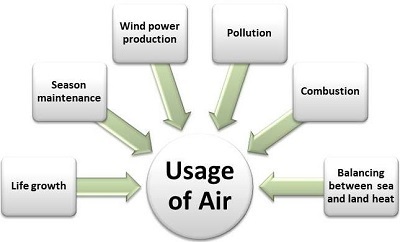 空气是自然界中一种丰富的资源,有助于维持生命。没有它,任何生命都无法存活片刻。它存在于大气中,大气由多种气体组成,例如氮气、氧气和二氧化碳含量较多,以及少量氩气、水蒸气和其他气体。空气中也存在细菌、孢子和悬浮尘埃。它是一种无形的物质,可以自由流动。没有人能看到它,但可以感觉到它。它占据空隙,具有重量并且可以压缩。