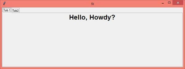 Label(tab1, text= "Hello, Howdy?", font= ('Helvetica 20 bold')).pack()