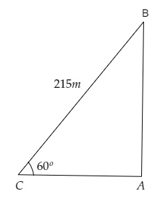 $\mathrm{BC}=215 \mathrm{~m}, \angle \mathrm{BCA}=60^{\circ}$