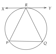 $\angle XRP = \angle PQR$ (切线与弦所成的角等于弦在另一条弧段上所对的角)