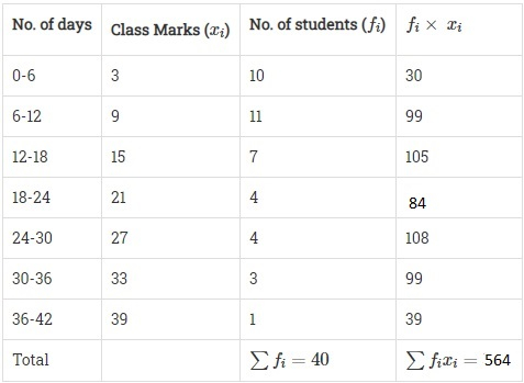一位班主任老师记录了全班 40 名学生整个学期的缺勤情况。求学生平均缺勤天数。