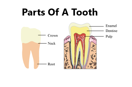 (iii) 牙髓: 它位于牙本质内部。它是一个包含神经和血管的牙髓腔。