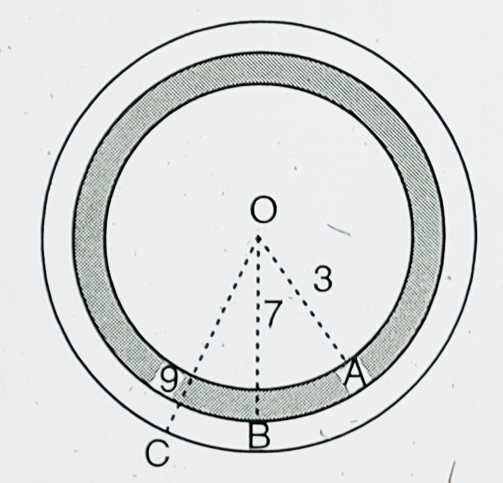 OA = 3 cm, OB = 7 cm, OC = 9 cm