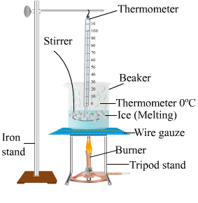 (a) 定义固体的“熔化潜热”这一术语。冰的熔化潜热是多少?(b) 绘制一个带标签的实验装置图,用于研究冰的熔化潜热。