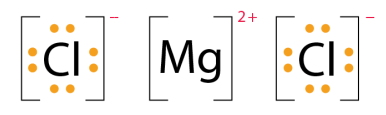镁原子失去2个电子以满足其八隅体规则,而2个氯原子各获得一个电子以满足其八隅体规则。