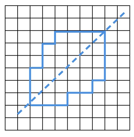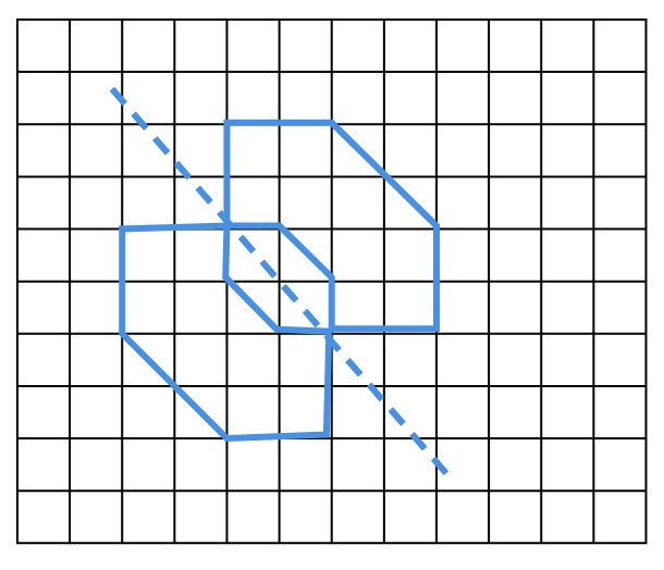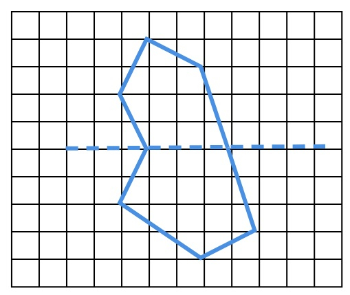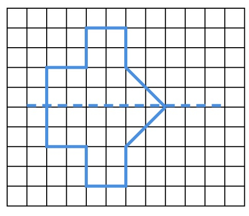 我们必须在方格纸上完成这些图形,使虚线成为对称线。