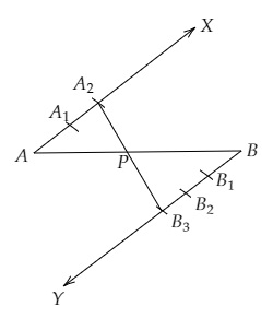 (iv) 从$AX$上截取两等份,从$BY$上截取三等份。