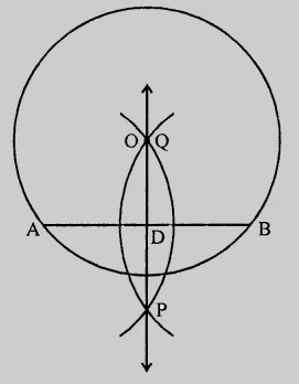 我们需要画圆、它的弦$AB$以及线段$AB$的垂直平分线。
